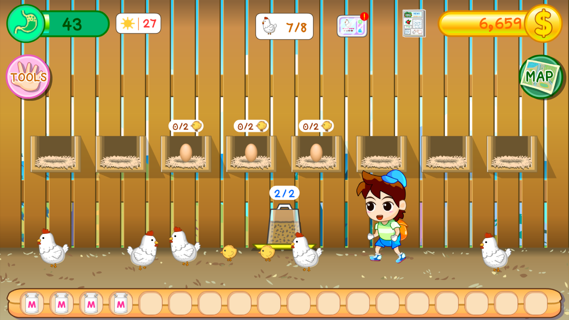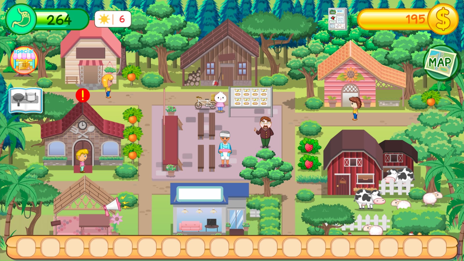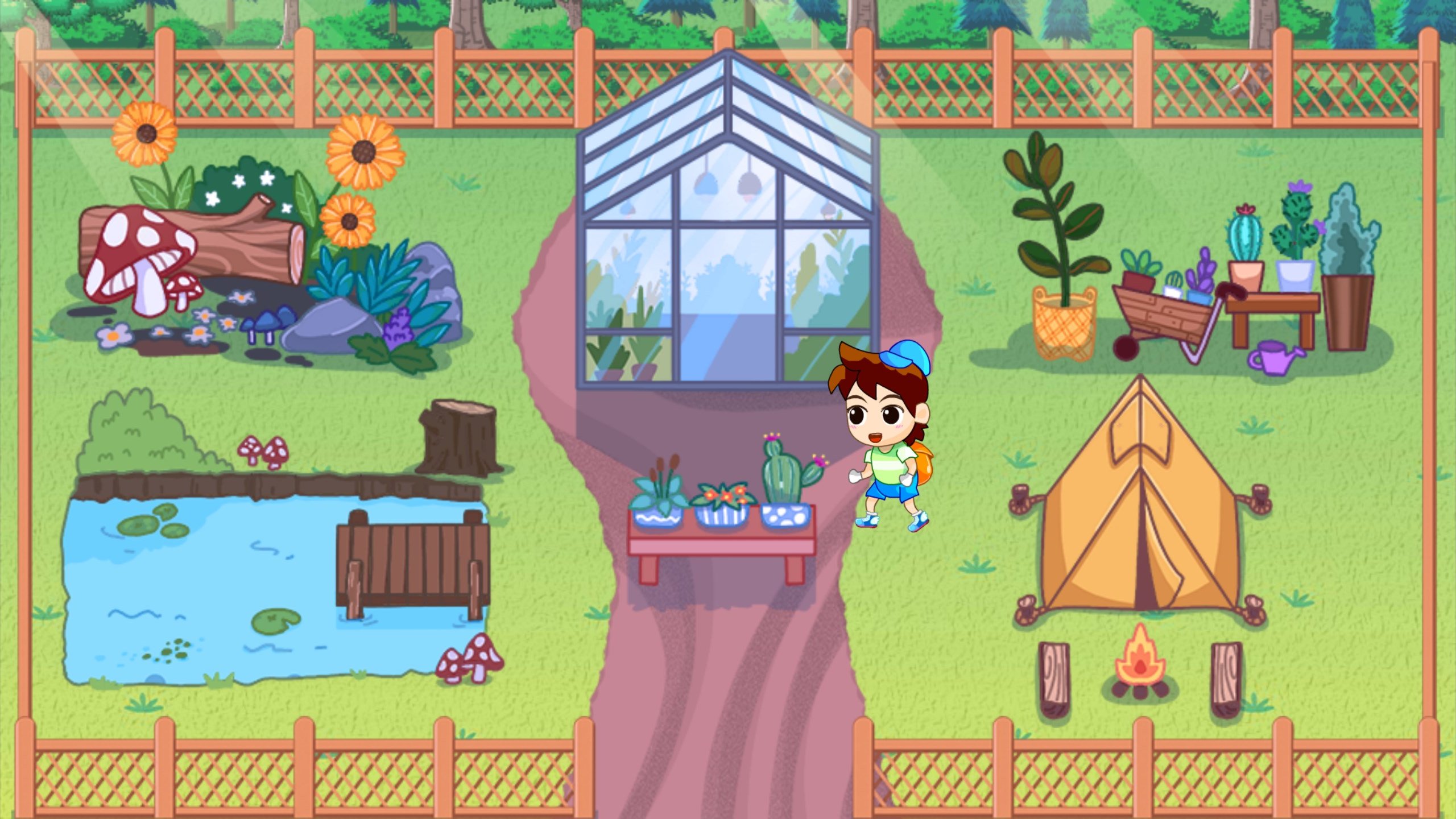 เกมปลูกผักเลี้ยงสัตว์เล่นง่าย ภาพสดใสน่ารัก ในมุมมองด้านข้าง ที่มีกิจกรรมให้ทำต่างๆ ทั้ง เลี้ยงวัว เลี้ยงไก่ เลี้ยงแกะ เลี้ยงหมู ตกปลา นำวัตถุดิบหรือผลผลิตที่ได้มาทำอาหาร มีการอัพเกรดฟาร์มและตกแต่งตัวละคร สวนหลังบ้านและสวนสาธารณะ มีมินิเกมรับจ้างช่วยเหลือชาวเมืองเพื่อรับเงินเพิ่มขึ้น